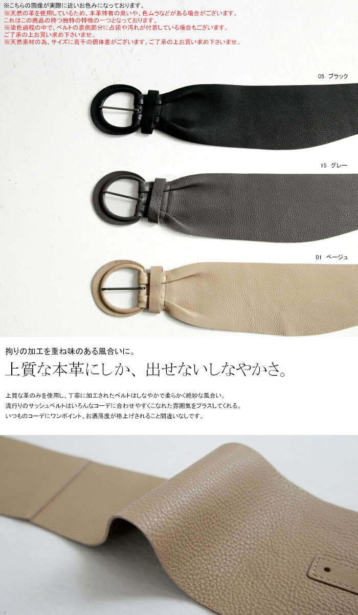 サイズ 全長 約125 幅 最大 約12.5 バックルの大きさ(直径) 約10 ※天然素材の為、革の風合いやシボ感、シワの出方など1点1点異なります。