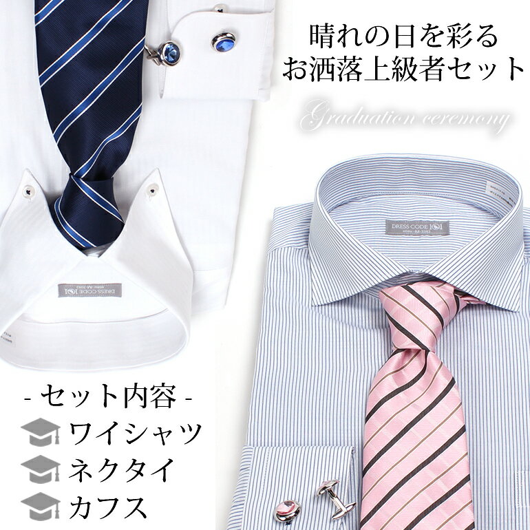 卒業式セット ワイシャツ ネクタイ カフス セット メンズ 紳士 男 GRADUATION-3SET- [おしゃれ ストーン 赤 青 緑 ピンク 大学 卒業式 スーツ 晴れの日 ストライプ レジメンタル チェック 花 小紋柄 シルクネクタイ][あす楽対応]