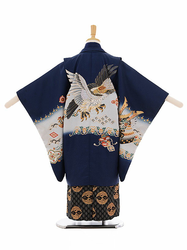 【レンタル】753|七五三 5歳 レンタル|七五三 着物 5歳|七五三 着物 男の子 F142 紺地 ぼかし かぶと鷹 5歳男の子|☆新品足袋プレゼント☆|七五三 着物 5歳 フルセット|七五三 5歳|子供|七五三 5歳児 レンタル|七五三|5歳用 着物|往復送料無料