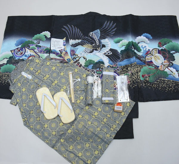 七五三 着物 7039 黒地/鷹と小槌65cm(男児7歳用115〜125cm)〔6〜7歳男児〕〔レンタル七五三〕〔七五三 レンタル〕〔卒園式〕〔イベント〕〔お兄ちゃん〕〔子供用〕〔発表会〕〔七草祝い〕〔七五三〕★fy16REN07★ 10P01Oct16 05P03Dec16